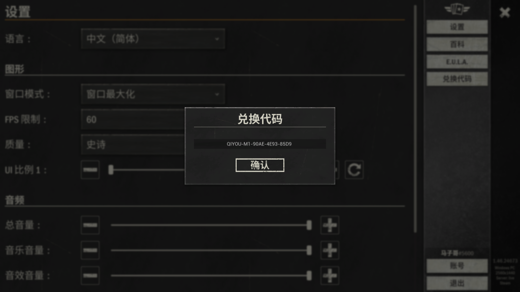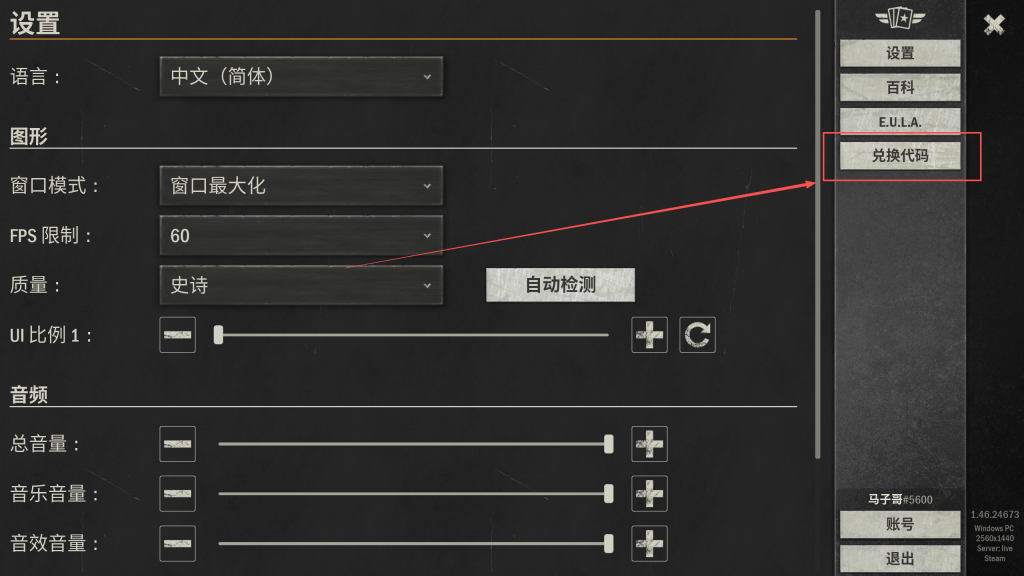 进入游戏打开设置,点击兑换代码