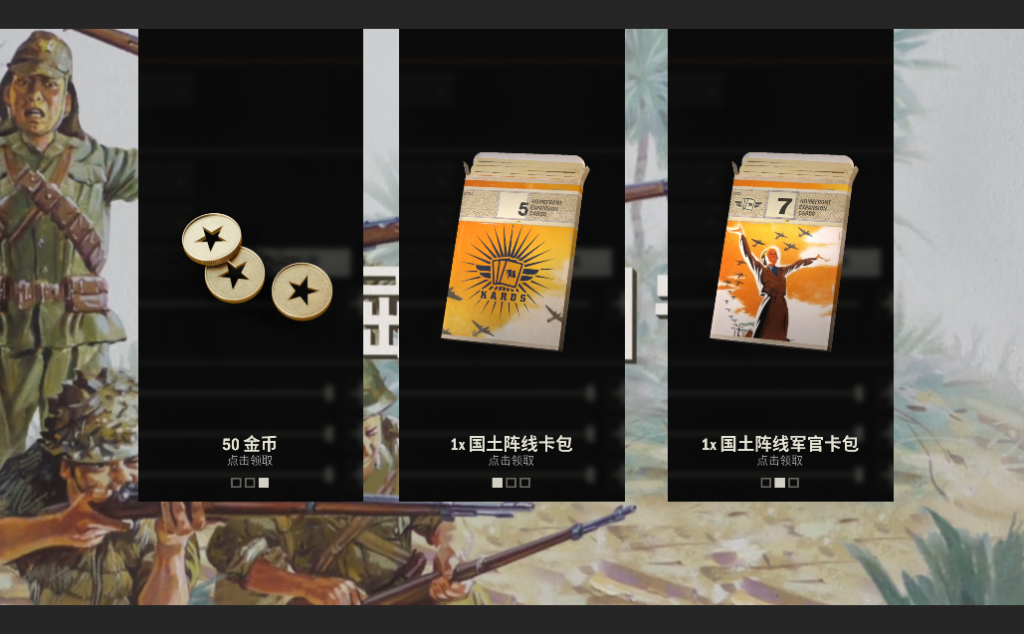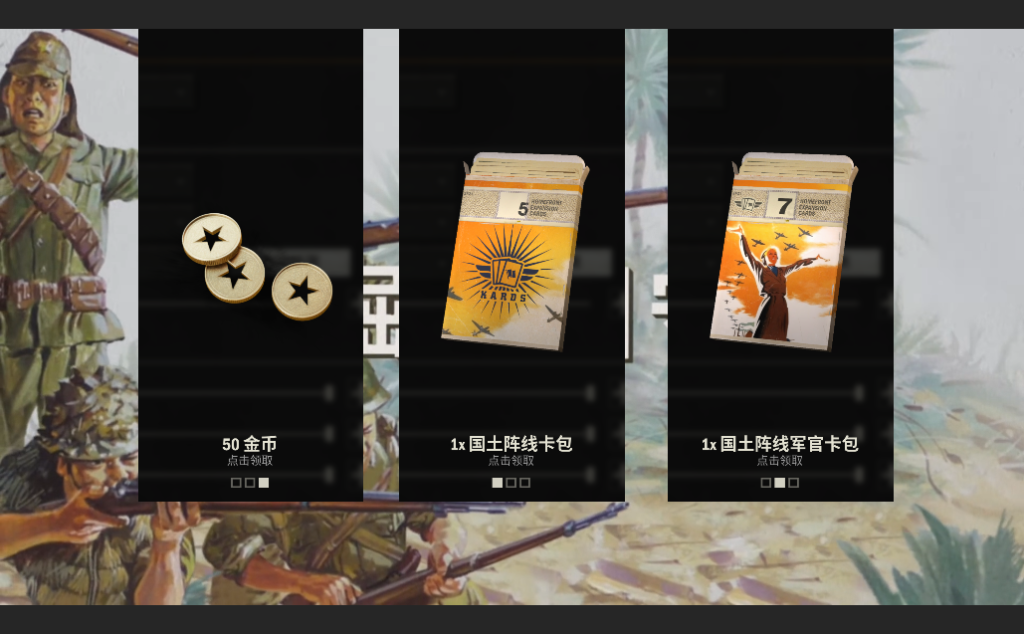 即可白嫖国土阵线卡包+国土阵线军官卡包+50金币奖励