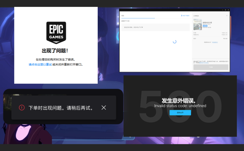 下单时出现问题导致领不了游戏