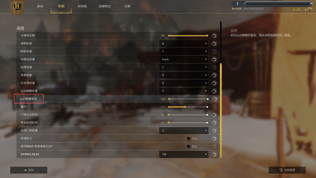 一定要关掉动态模糊哦,这样的画面设置可以最大程度提高帧数
