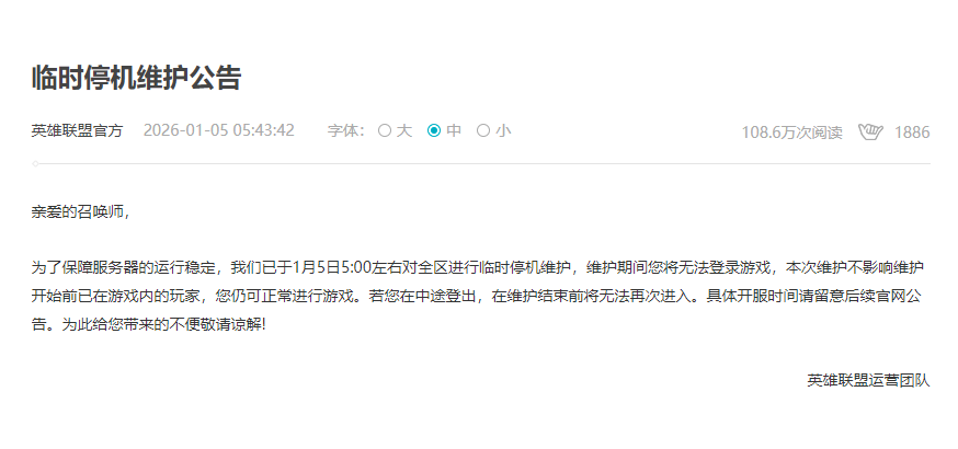 这是因为许可证书到期导致英雄联盟国服全区维护