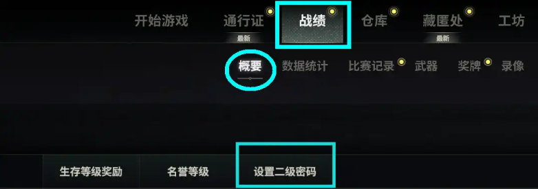 1.在战绩页面【概要】菜单中点击【设置二级密码】。