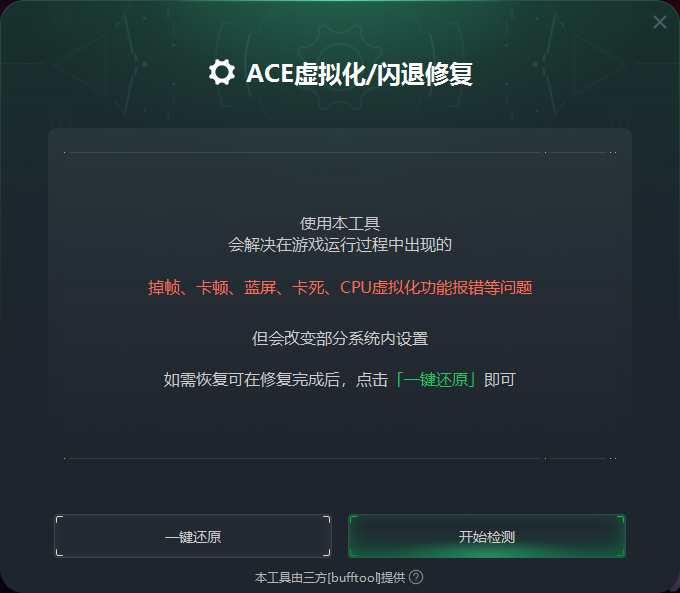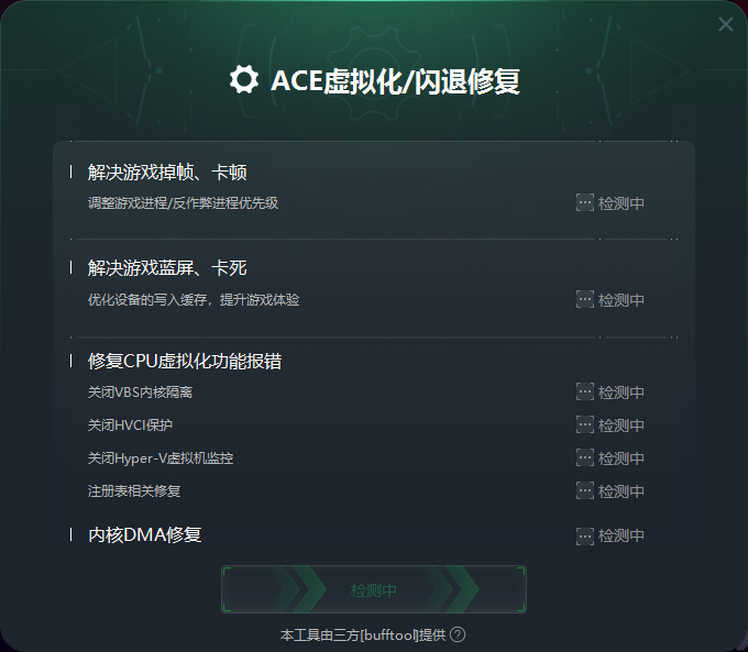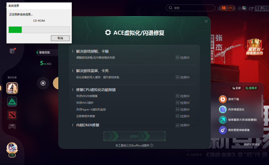 可以一键降低反作弊优先级,优化写入缓存,修复CPU虚拟化报错,一键调整电脑系统设置