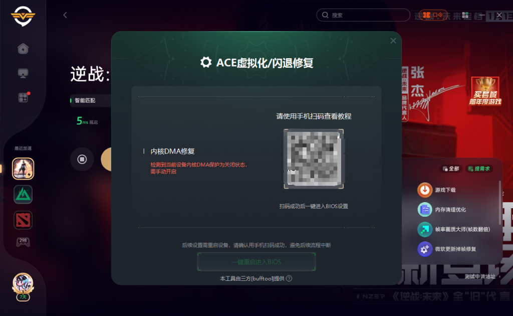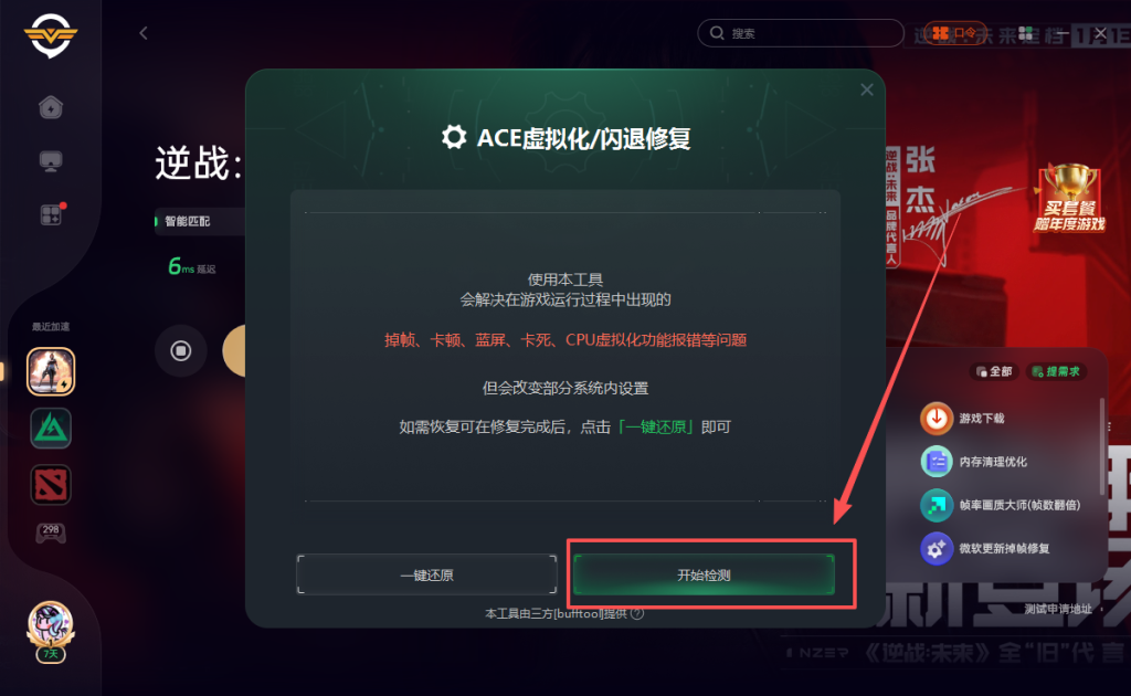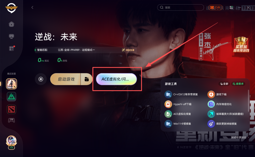 打开奇游,加速《逆战未来》点击ACE虚拟化/闪退修复
