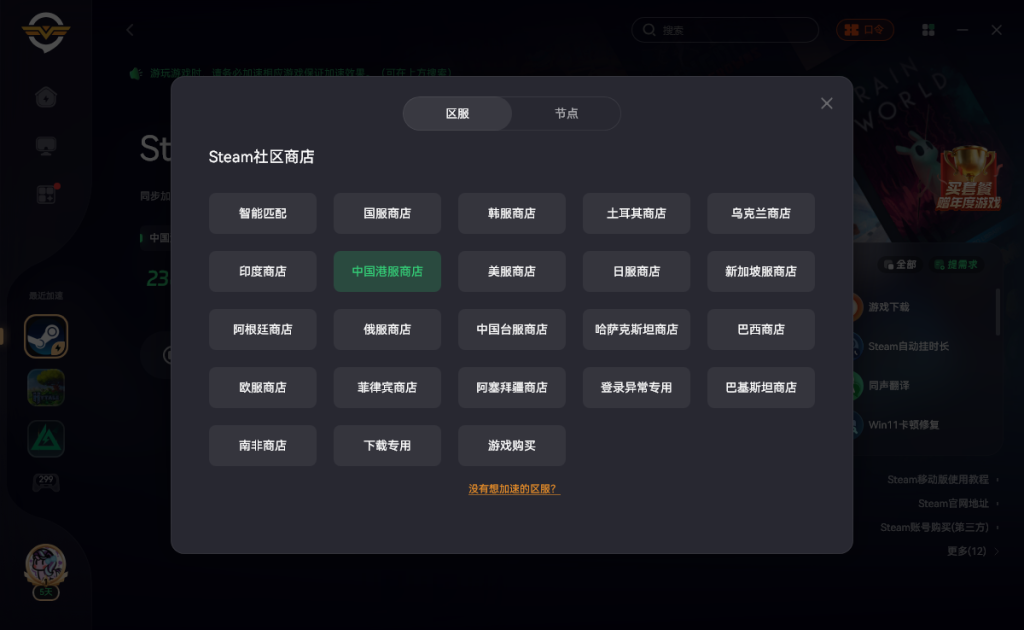 加速哪个区服节点就是切换对应区服