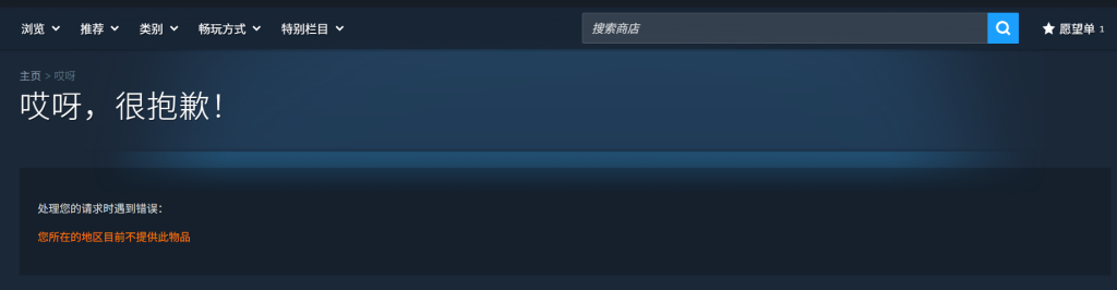 国区账号会显示您所在的地区不提供此产品!