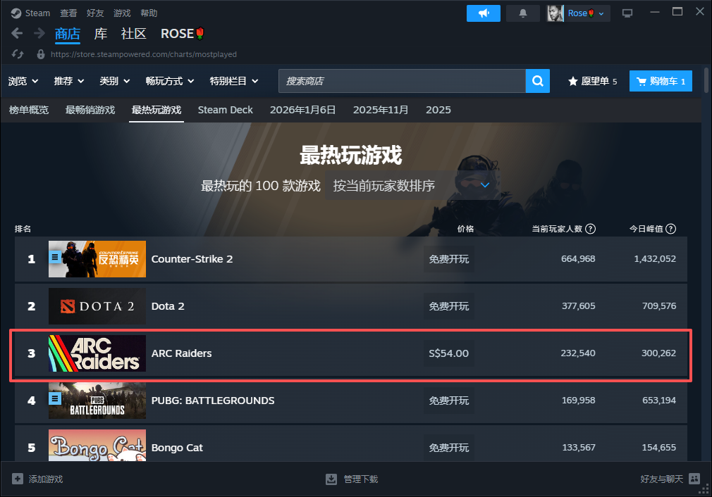 作为一款付费游戏目前steam在线榜仅次于cs2和dota2