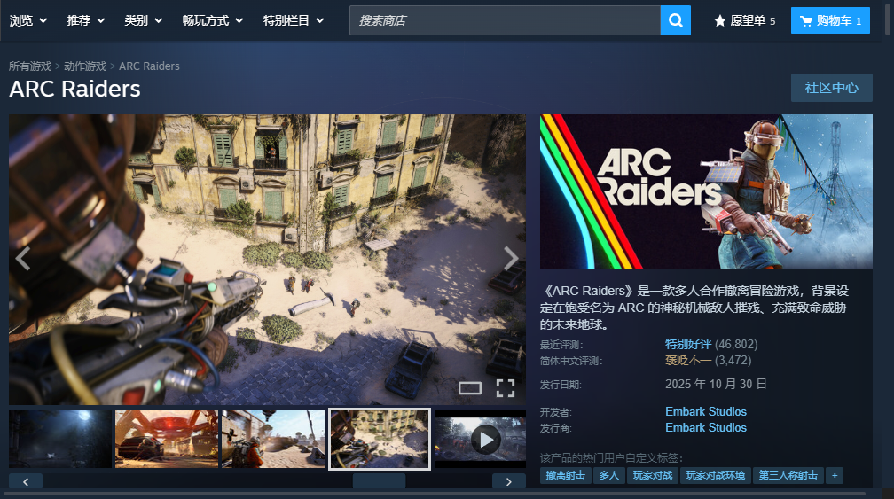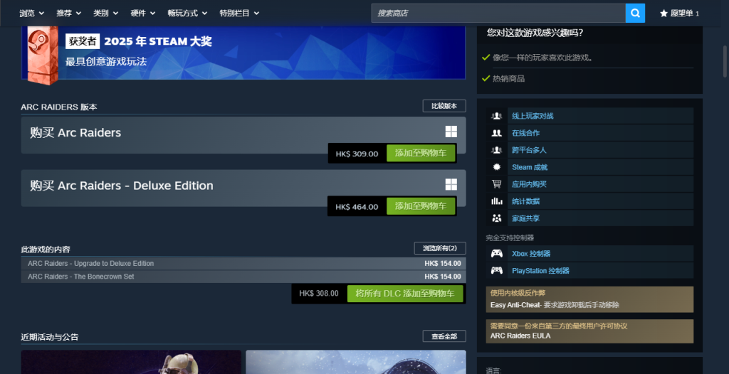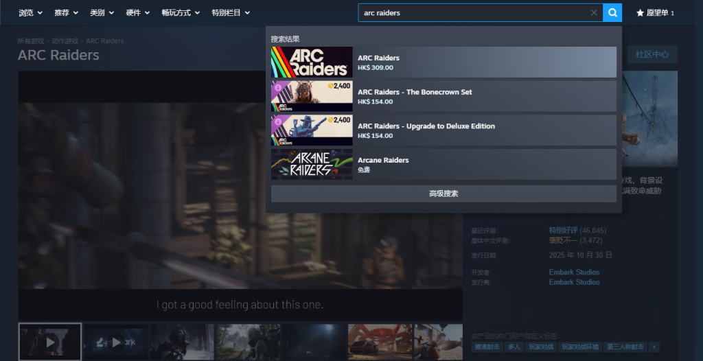 在商店搜索《ARC Raiders》就可以看到游戏