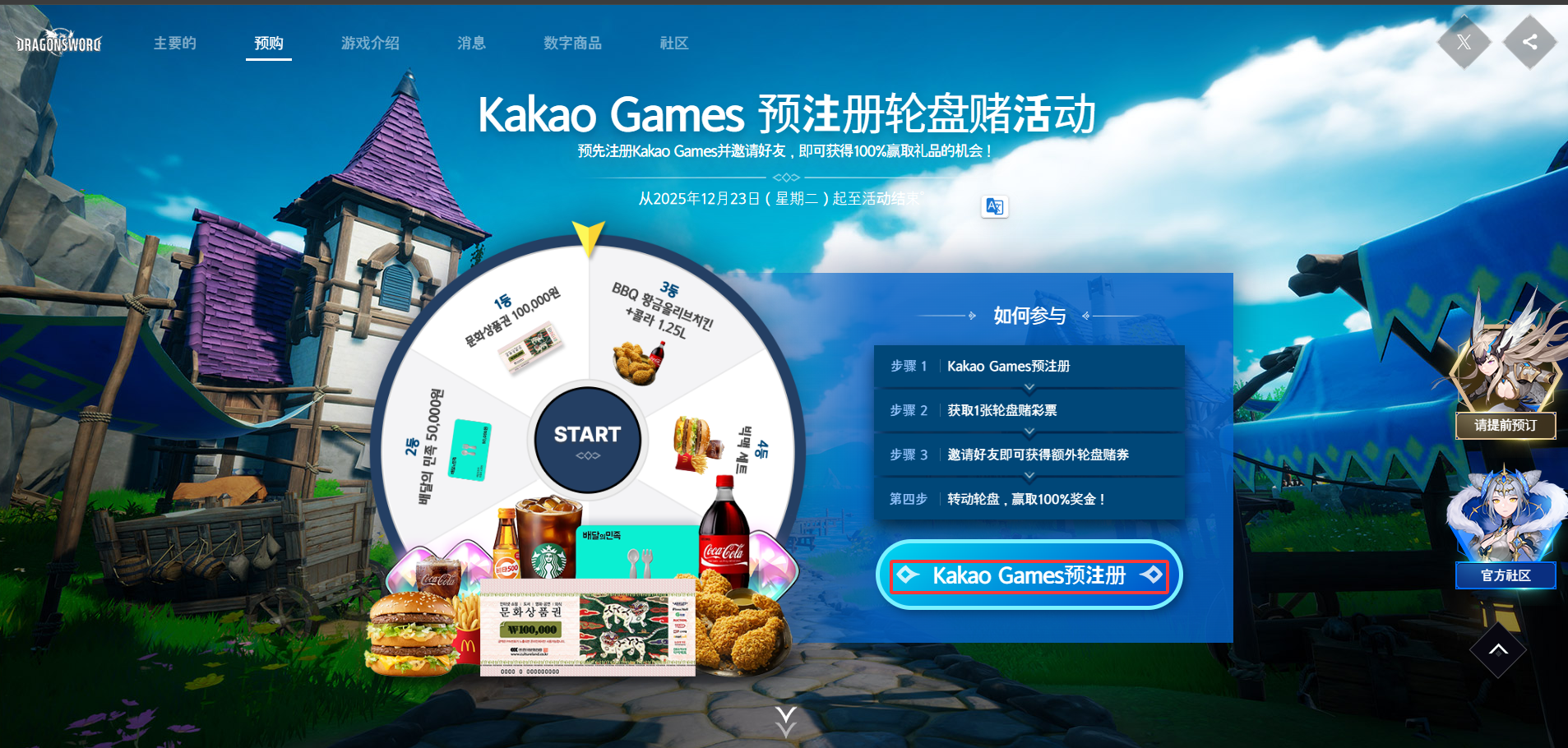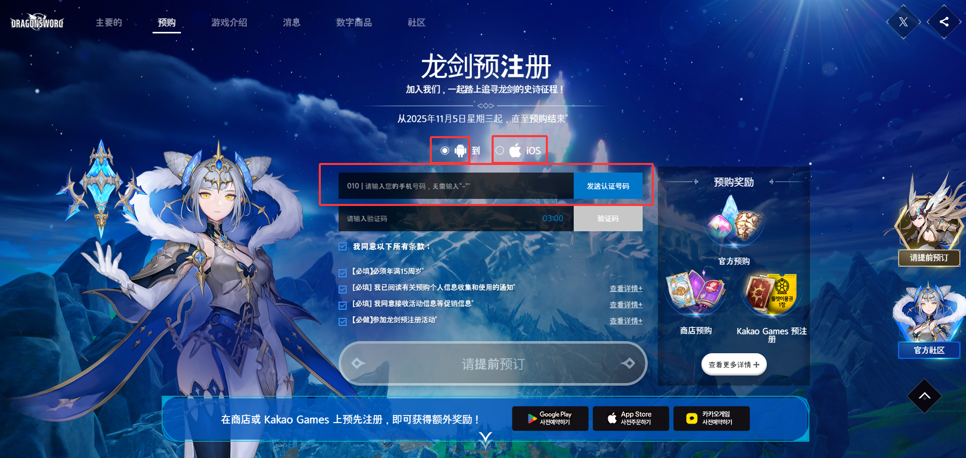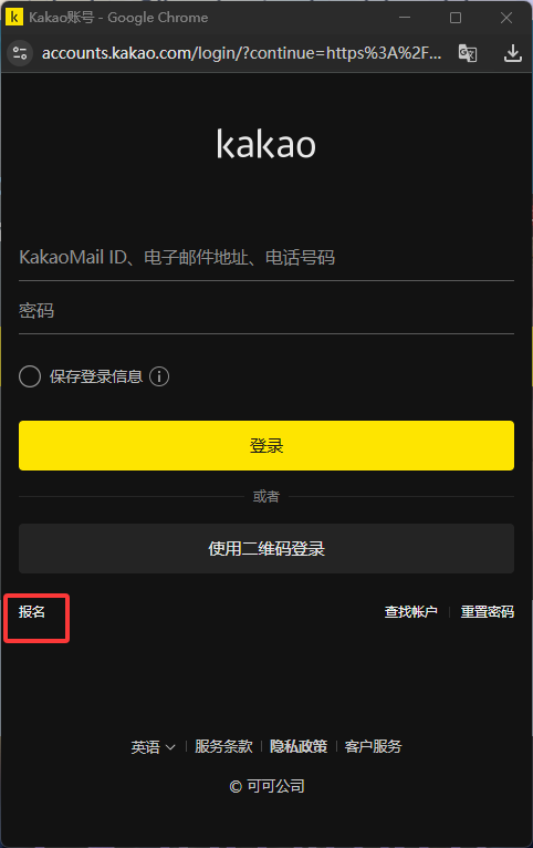 事前预约教程 奇游加速器官方 2026-01-19 1.进入游戏官网,点击界面中央的【提前预约】按钮。>>点击进入 2.选择接收验证码的手机,并在下方输入韩国手机号,接受验证码后填入。 3.滚动滚轮前往下一界面,根据手机类型点击下方预约按钮,可前往kakao进行预约。 4.点击任意按钮后都会冒出kakao账号的登录界面,若您还没有注册kakao账号,您可点击红框圈出的左下角注册按钮进行注册. 5.输入邮箱中收到的验证码。 6.设定密码及用户名称等完成注册。 7.完成预约。