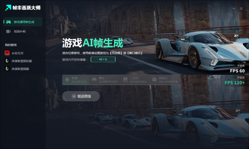 选择游戏通用帧生成并一键开启