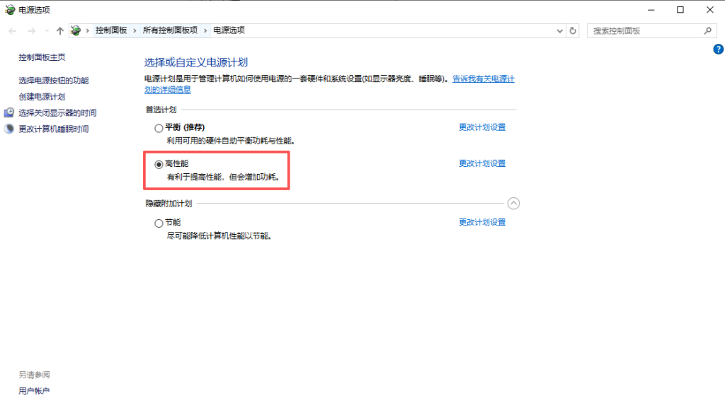 然后把系统电源模式调至高性能,可以有效提高帧数!