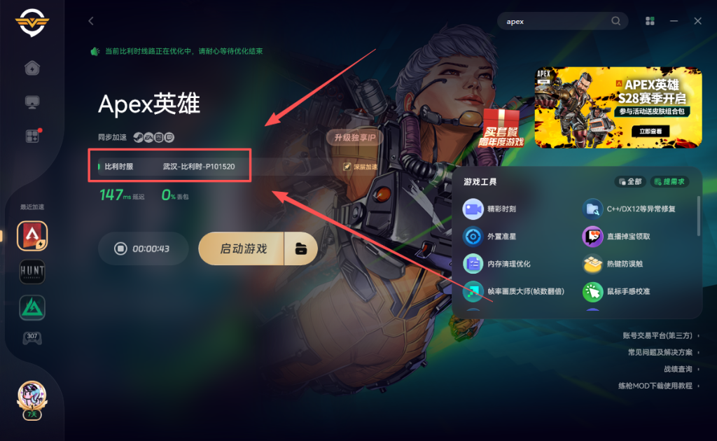 然后打开奇游加速《Apex英雄》比利时服接着启动游戏