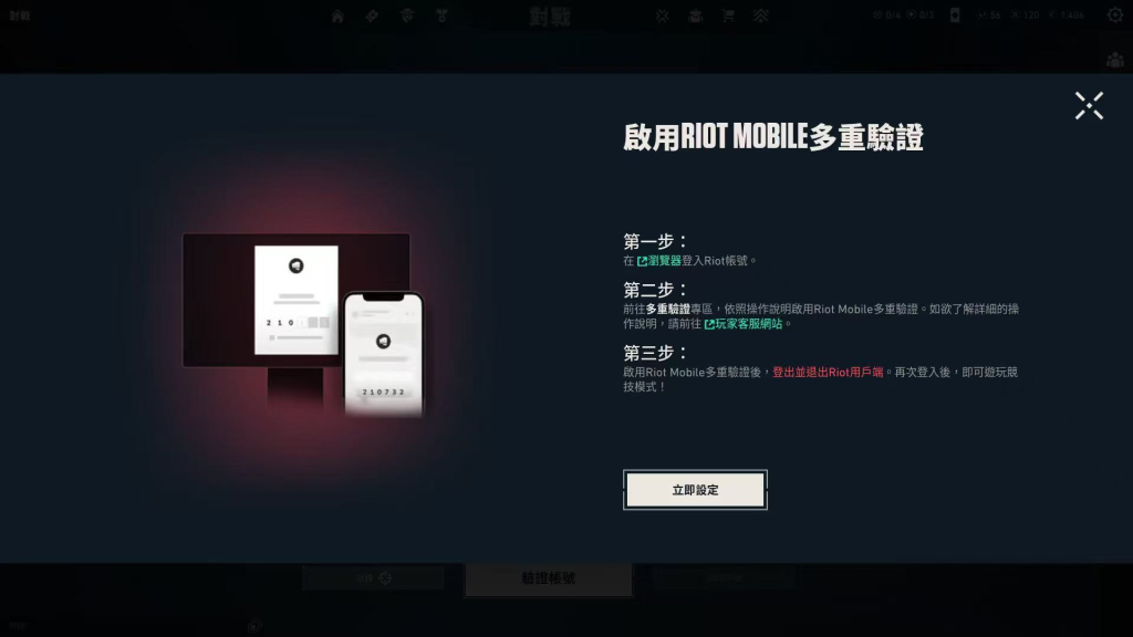 由于拳头最新更新亚服超凡以上的玩家需要通过Riot Mobile App完成双重验证才可以打排位模式