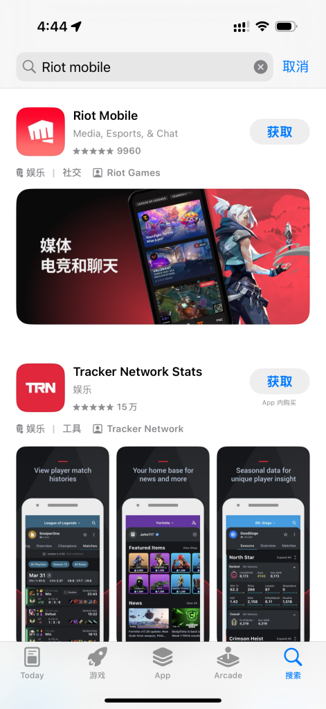 之后在appstore登入外区苹果账号搜索riot mobile就可以下载