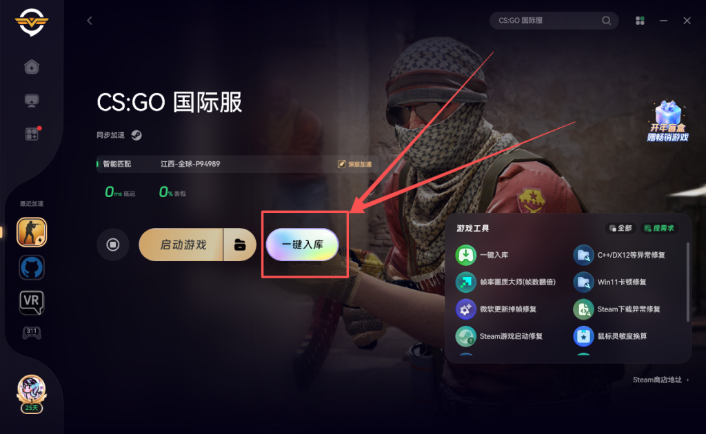 CSGO回归!Steam商店重新上架!一键入库+下载教程 解决:Steam搜不到/steam连接错误 奇游加速器官方 2026-03-04 兄弟们!CSGO回来了!还是原来的老味道 依旧是免费入库,目前已经提供下载和游玩 但是V社调整了csgo隐藏状态,直接搜索是搜索不到的 我们可以使用奇游加速器一键入库下载 首先我们打开Steam客户端,再打开奇游加速《CSGO国际服》 加速成功点击一键入库就会弹出steam下载界面了 目前游戏无法官方匹配,可以游玩人机模式和社区服务器 如果进游戏提示连接失败,保持奇游加速重新进入游戏即可 以上就是关于CSGO回归的全部内容,希望对你有所帮助。