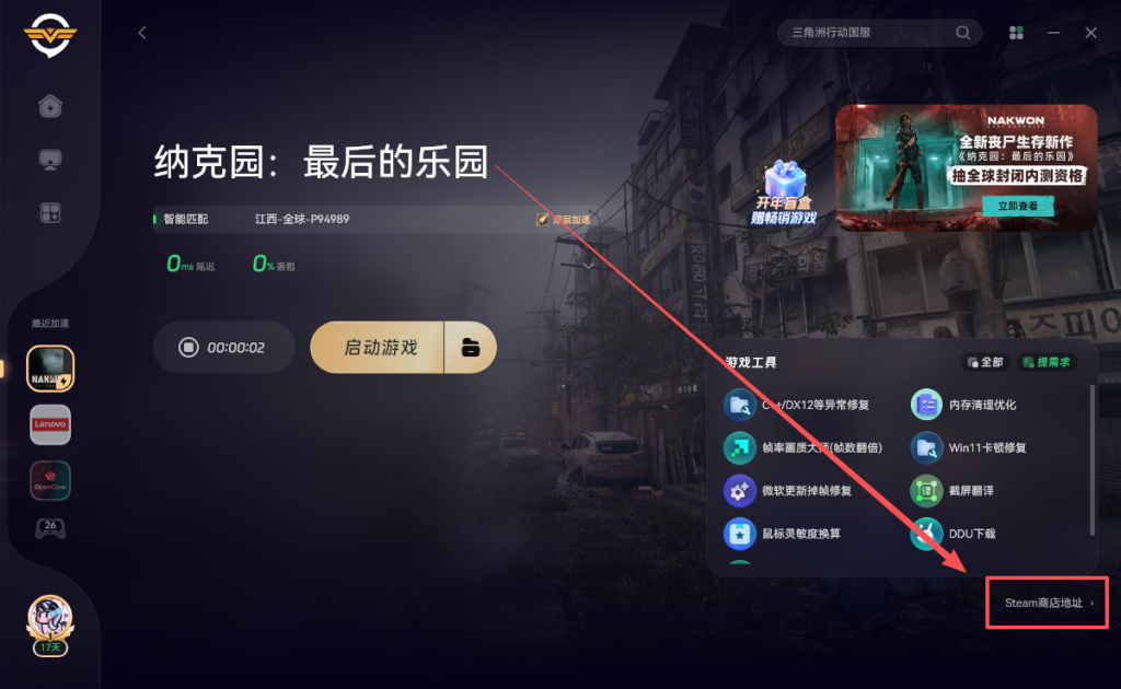 不知道怎么进入商店页面的玩家,我们加速《纳克园:最后的乐园》点击右侧的steam商店地址