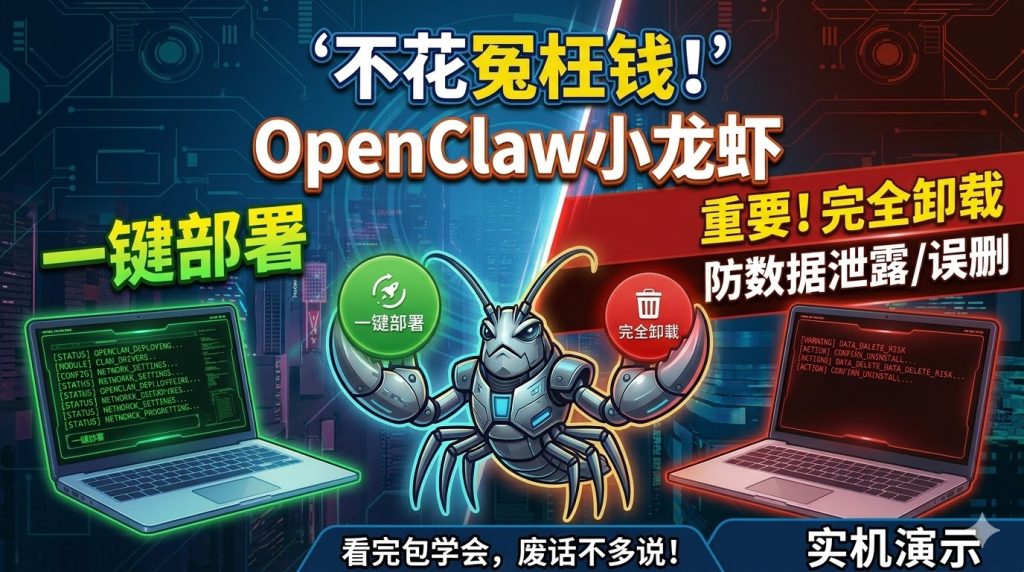 不要再花冤枉钱去网上找人部署小龙虾了!OpenClaw小龙虾一键部署+卸载教程!
