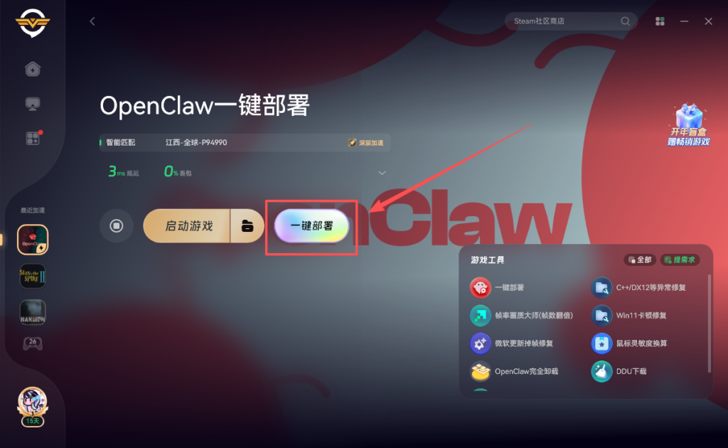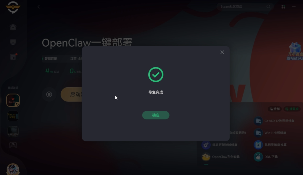 奇游支持一键部署小龙虾,打开奇游加速《OpenClaw一键部署》