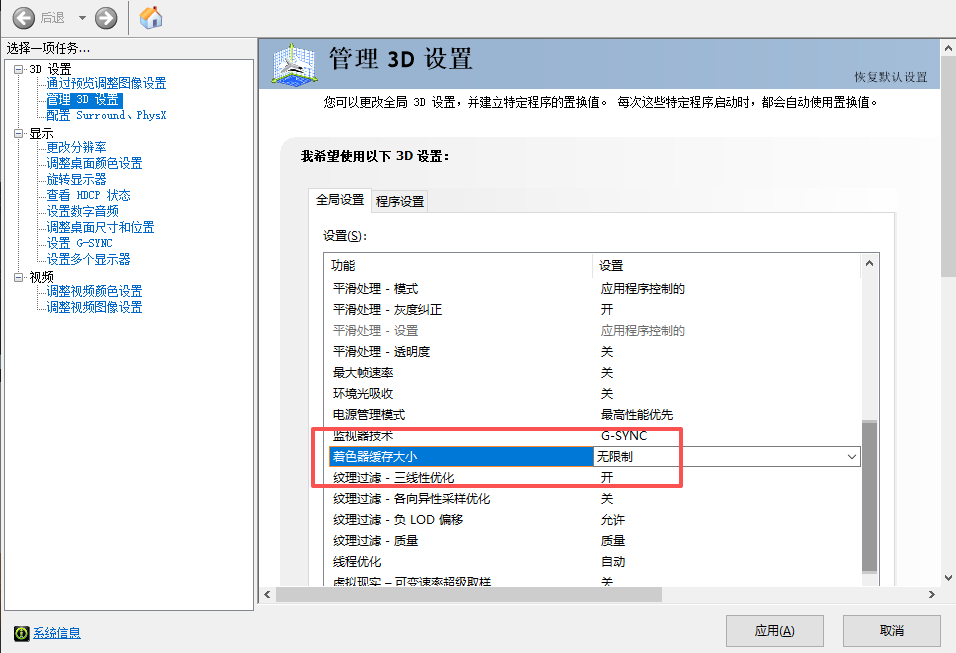 把全局设置中的着色器缓存大小改为无限制并应用即可