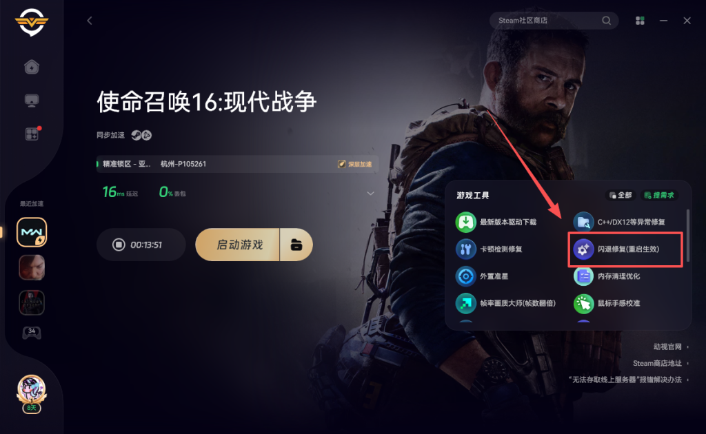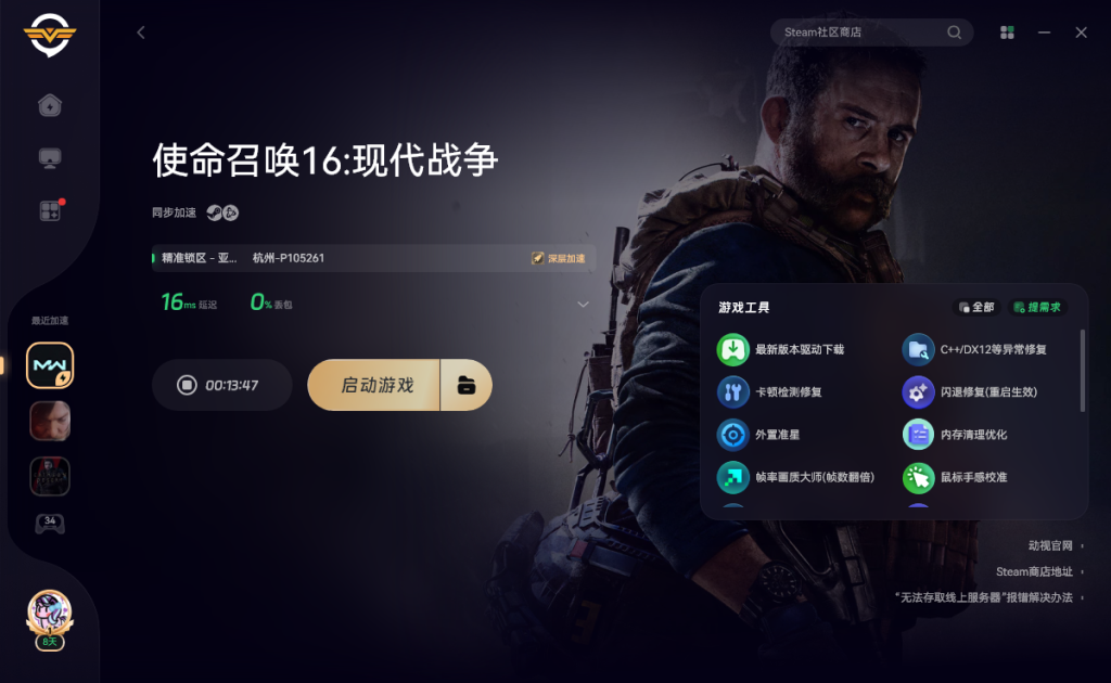 奇游紧急新增游玩路线,打开奇游加速《使命召唤16》即可正常进入游戏游玩哦