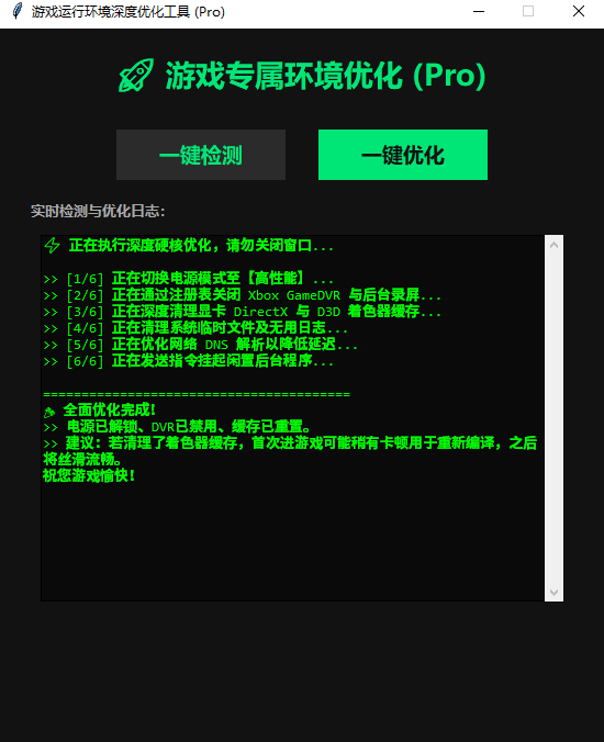 就会一键检测系统电源模式,磁盘状态,着色器缓存等问题