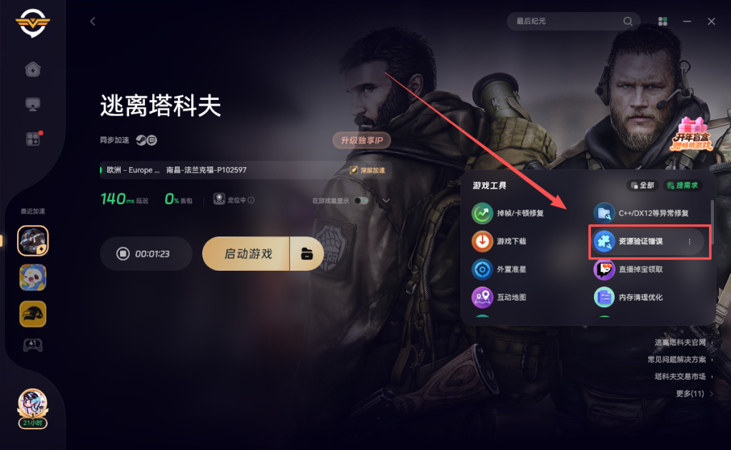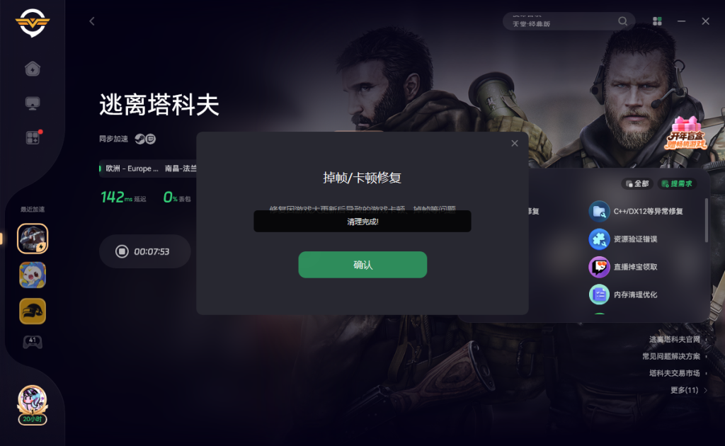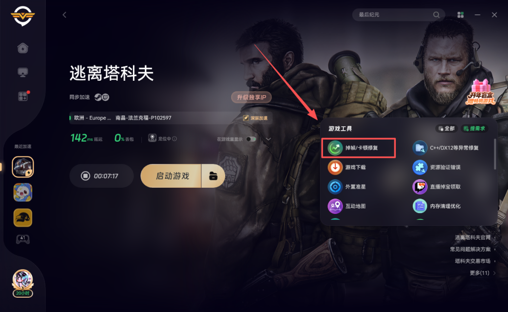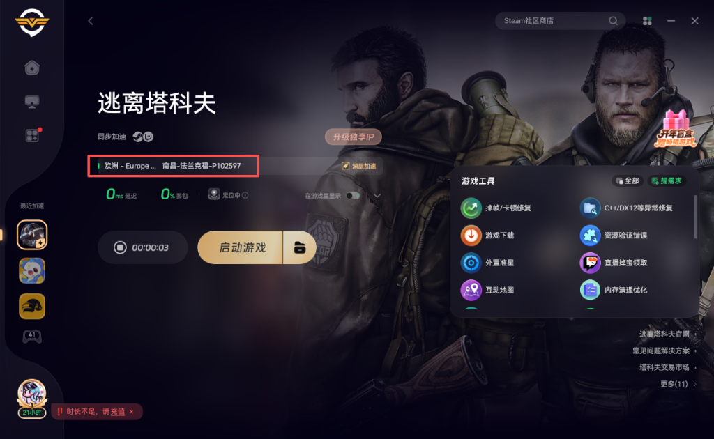 打开奇游加速《逃离塔科夫》即可正常匹配游玩