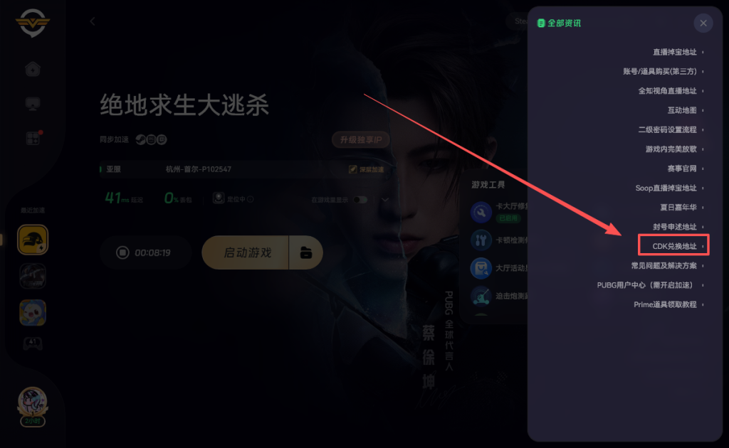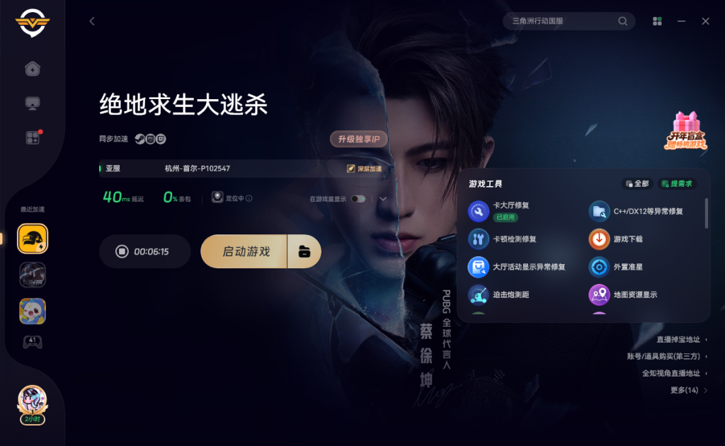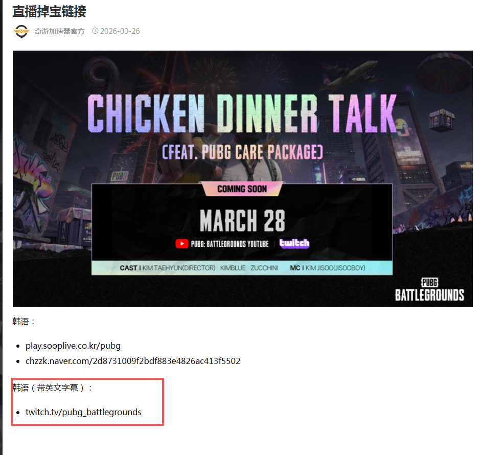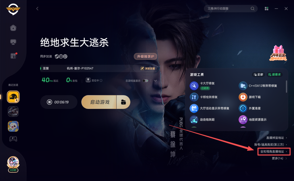 只需打开奇游加速《绝地求生大逃杀》就可以正常观看直播