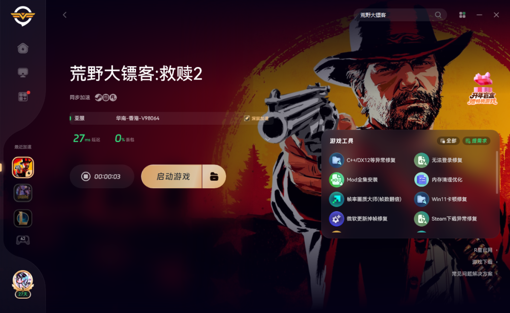 可以使用奇游加速《荒野大镖客2》即可正常操作