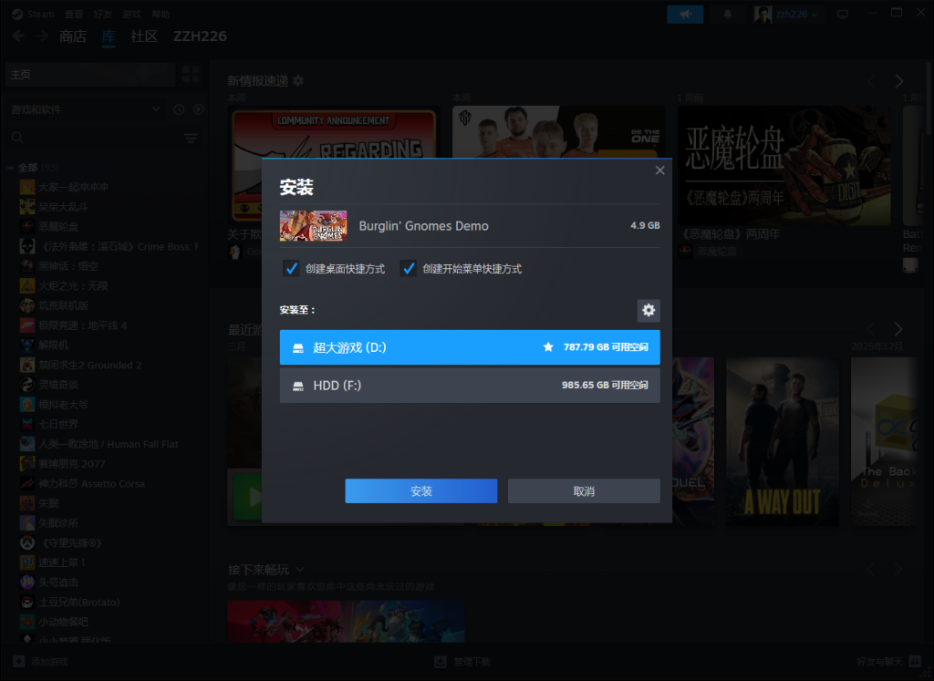 steam就会自动拉起入库下载界面,接着安装游戏