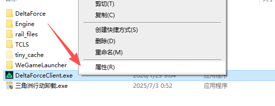 进入后右键三角洲EXE程序属性