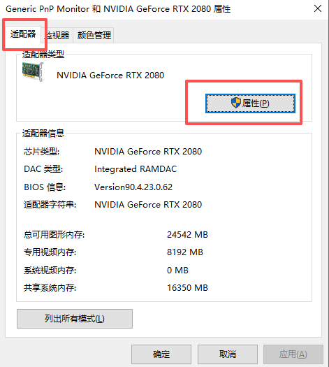 显示器1的显示适配器属性