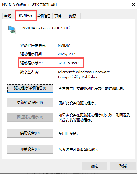 在驱动程序中就可以看到驱动版本了