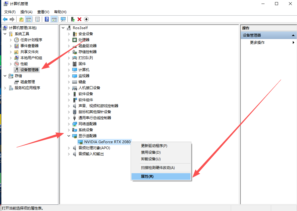 在设备管理器中找到显卡右键属性