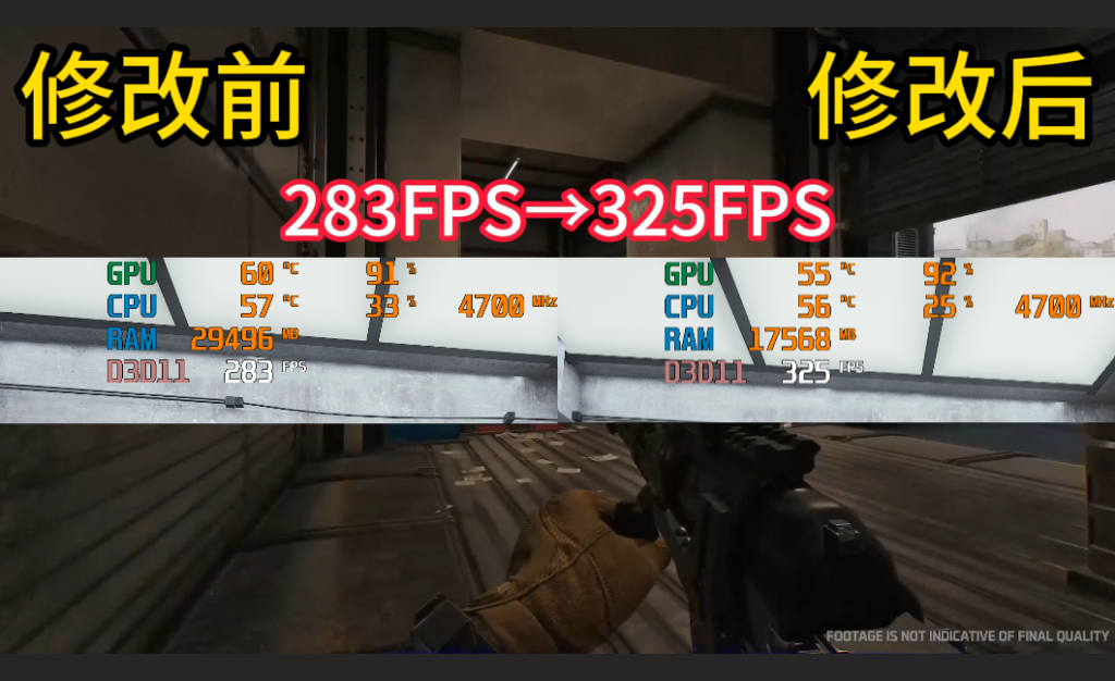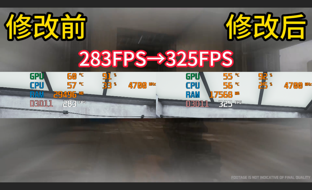 283 FPS直接涨到325FPS提升巨大