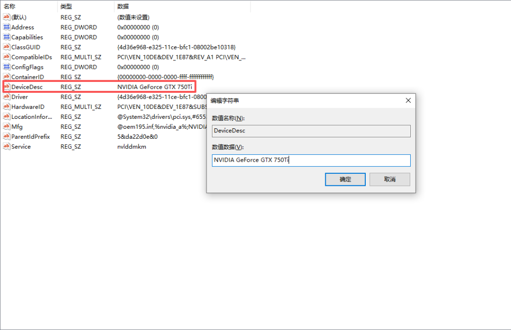 然后修改这个DeviceDesc随便改一个低端显卡型号