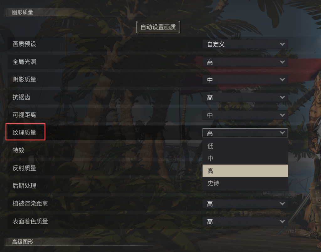 然后根据显存调整纹理质量12G史诗8G高 6G中 4G低