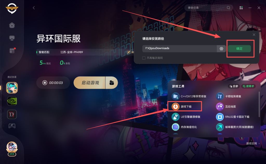 打开奇游加速《异环国际服》点击右侧的游戏下载