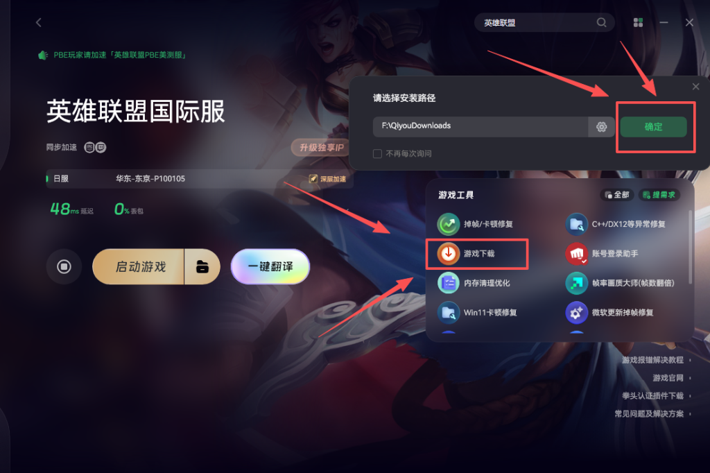 我们加速《英雄联盟国际服》点击右侧的游戏下载