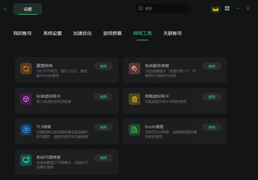 除了加速网络之外,奇游加速工具也有很多其他功能,比如专业的网络修复工具、FPS优化工具,玩家们如果碰到网络设置问题、网络文件hosts异常等网络问题都可以使用奇游的网络工具箱来快速解决,让玩家们不用再担心遇到网络问题不知道如何解决。