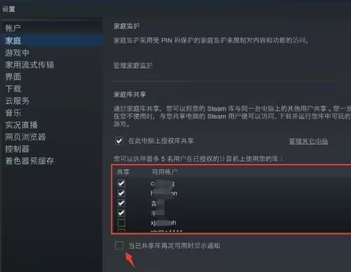 在“家庭共享”页面中,勾选“为其他用户库共享”选项,并选择你想要共享的游戏。在右侧,你可以设置哪些游戏可以共享,以及每位共享者可以玩到的游戏数量。