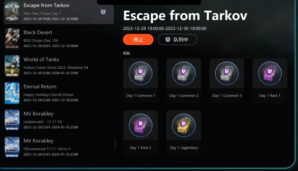步骤四:在《逃离塔科夫》的掉宝活动页面找到参与按钮,这样你就可以在后台参与活动,而不必真的观看直播,依然能够领取奖励。
