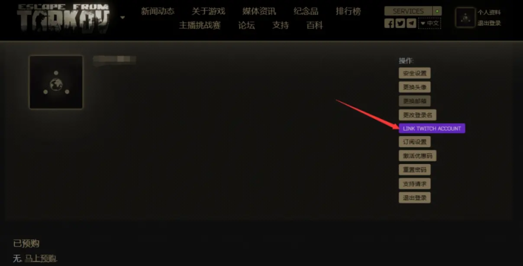 步骤二:接着,登录《逃离塔科夫》官网,并绑定你的Twitch账号。