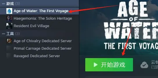最后啊,在左边栏里找到《水之纪元》这款游戏,点一下“开始游戏”,就能跟邀请的好友联机玩了。
