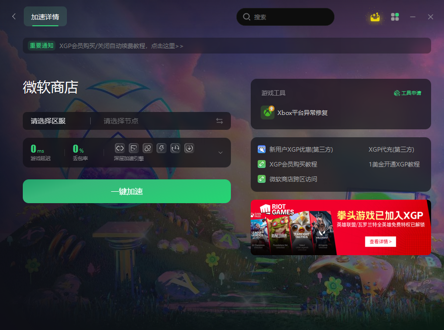 首先啊,玩XGP和玩steam一样,都得有个加速器。我推荐大家用奇游,它能帮你优化网络环境,玩游戏更流畅。你就打开奇游加速器,搜“XGP”,然后点击加速,这样网络环境就优化好了,可以开始玩游戏了。