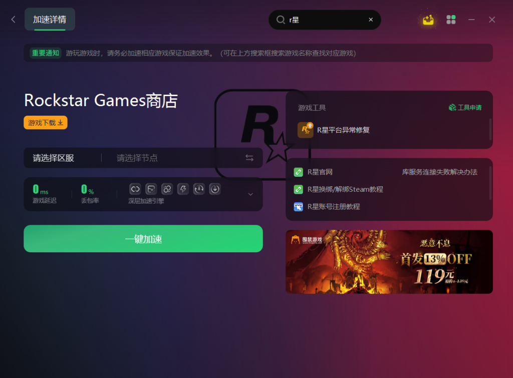 有时候游戏登不上去,可能真的是网络在作祟。你说R星无法登录、库服务连接失败、登录一直转圈?这很可能就是网络环境导致的问题。咱们来试试优化网络这招。在打开R星的时候,别忘了打开奇游,然后搜索“R星”。