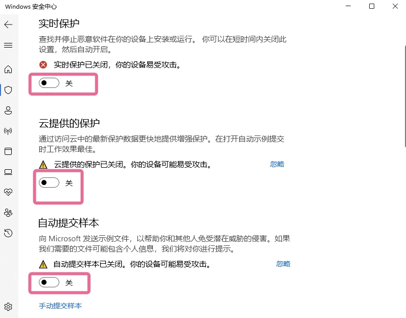 解决方法三:关闭实时保护