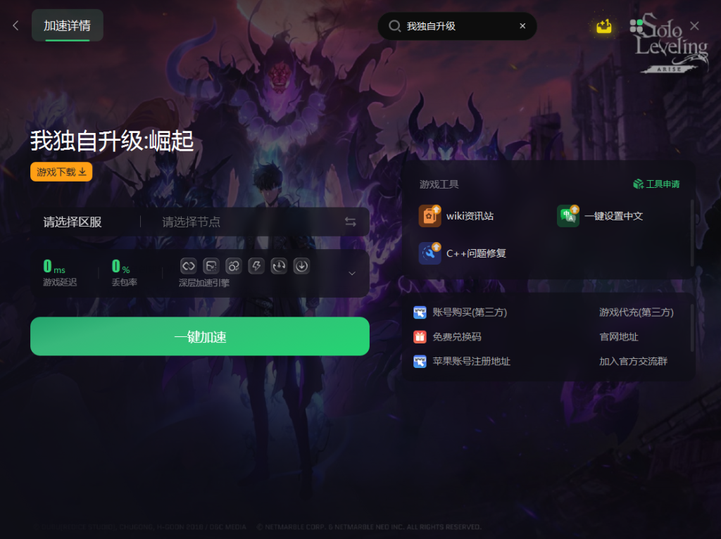 由于《我独自升级:崛起》是一款外服游戏,对于国内玩家来说直连网络可能会遇到一些延迟或卡顿的问题。所以一个优秀的加速工具就显得尤为重要。在尝试了多款加速工具后,小编强烈推荐奇游加速工具它能为玩家提供稳定、流畅的游戏体验。