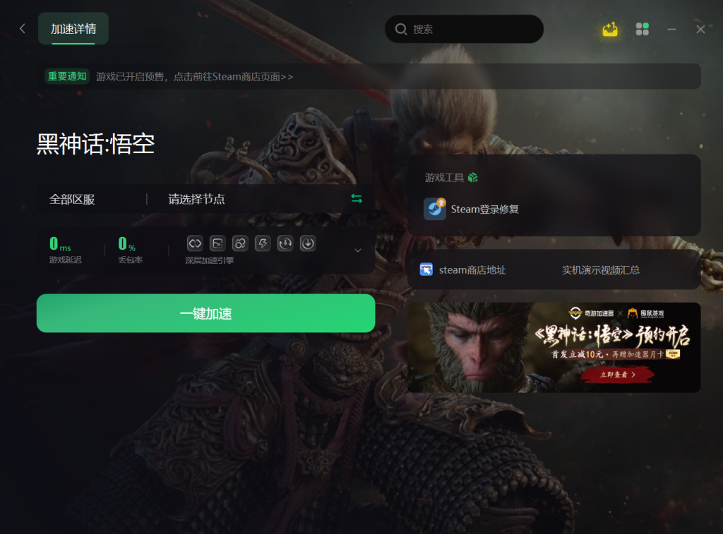这时,你可以使用奇游工具来优化网络连接。在奇游工具中搜索Steam社区商店,点击一键优化,即可顺利进入市场。