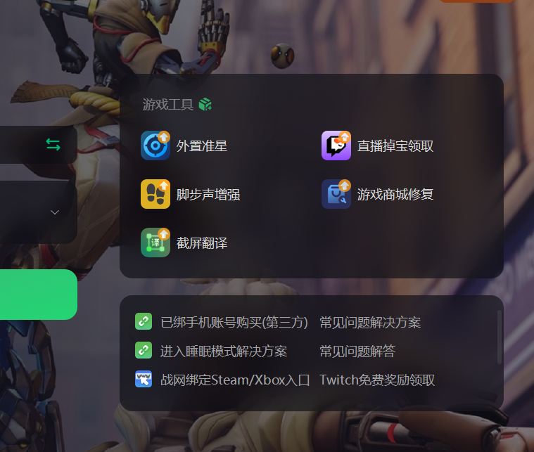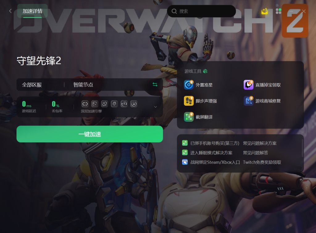 而且啊,奇游还为《守望先锋2》提供了好多实用的工具,比如说准心工具啊、同步翻译啊,还有个守望先锋2商城修复工具。这些都特别方便,你可以在加速页面的工具栏里找到它们。