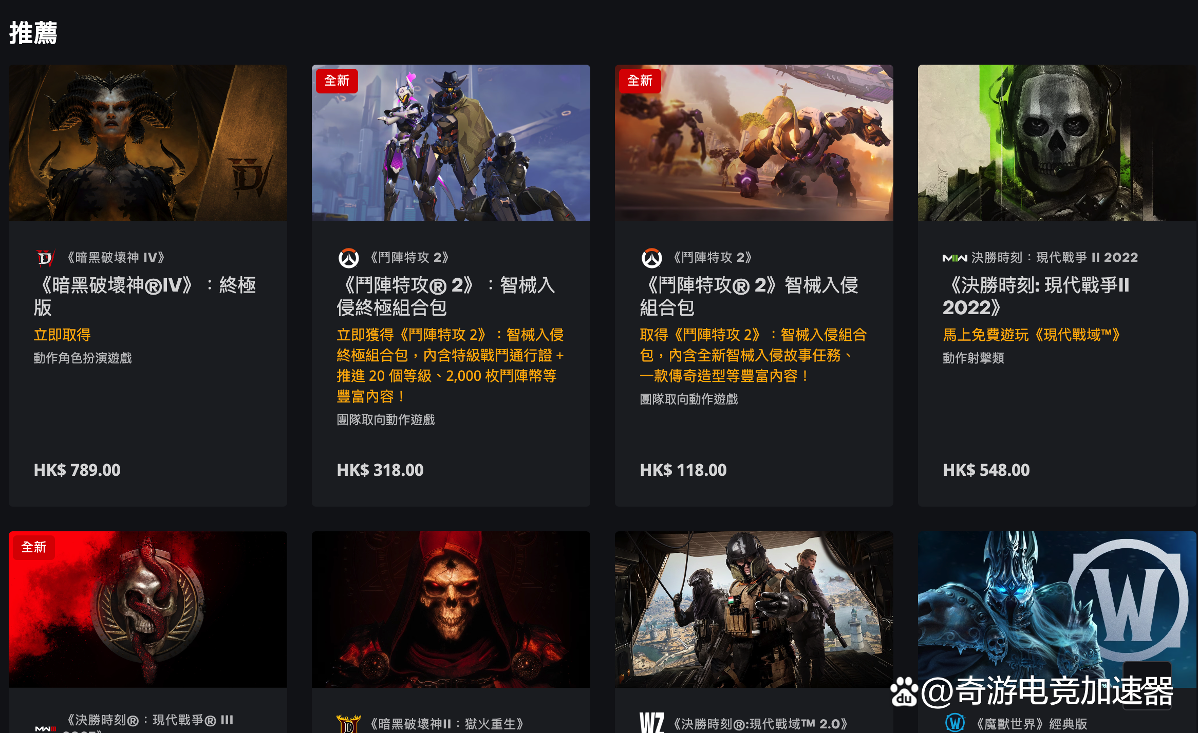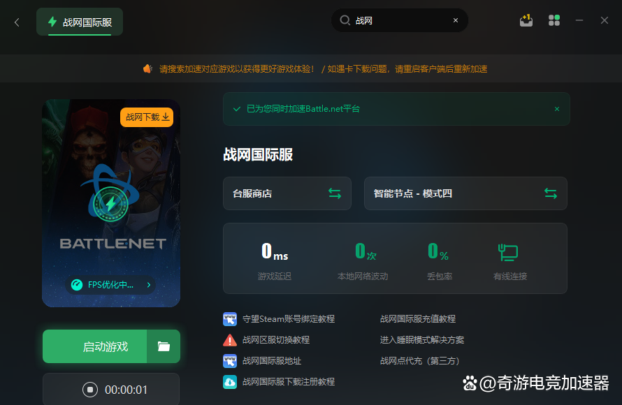 战网客户端无法安装或安装一直卡在更新界面可能是由于网络环境导致的问题。在打开战网过程中,打开奇游,搜索”战网”,优化电脑本地网络的环境,从而解决因网络问题导致的问题。